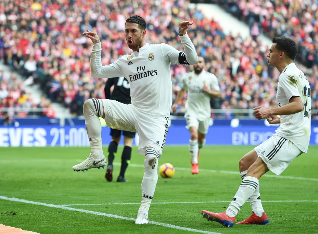 Sergio Ramos duke festuar golin e tij ndaj Atletico Madridit në Wanda Metropolitano (Foto: Denis Doyle/Getty Images/Guliver)