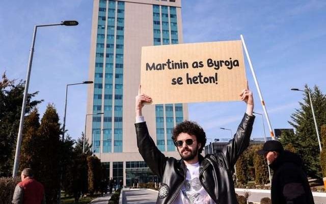 E një e tillë është shfaqur edhe sot. Syla është shfaqur me një pankartë në dorë me mbishkrimin “Martinin as Byroja s’e heton”.