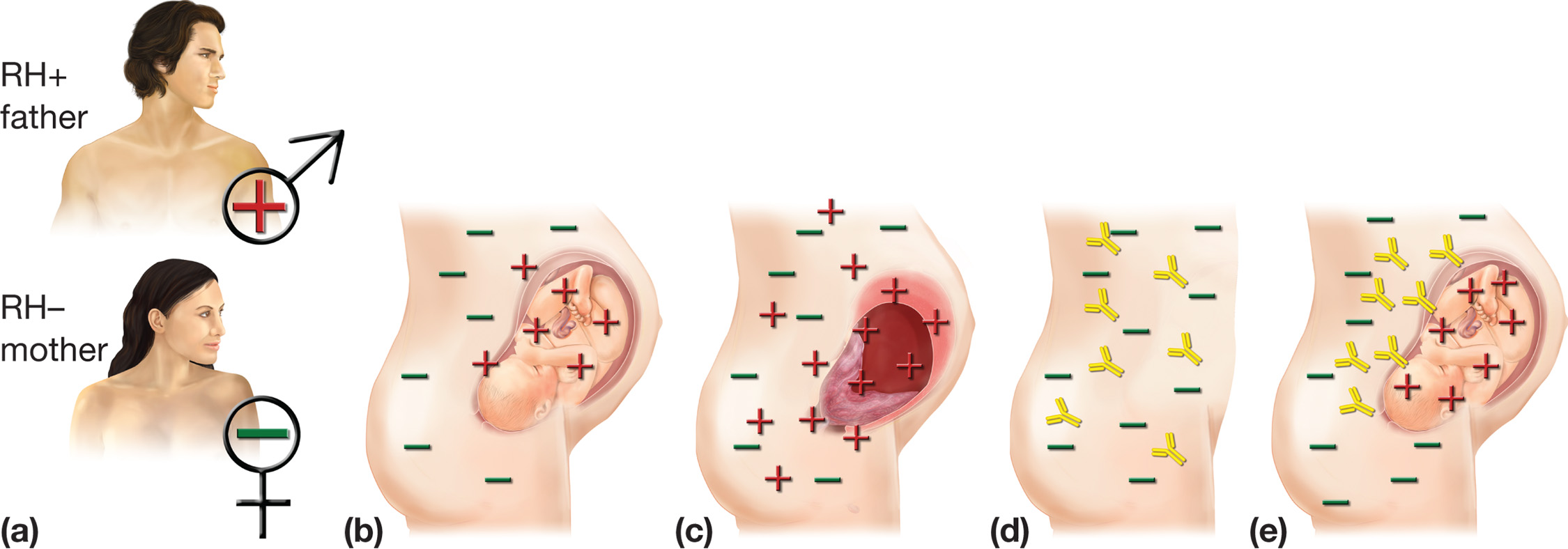 Mund të ndodhë që fëmija i cili zhvillohet në barkun e nënës Rh-negative të trashëgojë grupin e gjakut Rh-pozitiv nga babai (dhe kjo ndodh në 50% të këtyre rasteve). Atëherë vijnë problemet, por jo në shtatzëninë e parë, sepse gjatë saj gjaku i fetusit nuk kalon në qarkullimin e gjakut të nënës. Megjithatë, gjatë lindjes, gjaku i foshnjës depërton në qarkullimin e gjakut të nënës me ç’rast organizmi i saj fillon të prodhojë antitrupa (molekula proteine të cilat më vonë i shkatërrojnë antitrupat “e huaj” në organizëm).