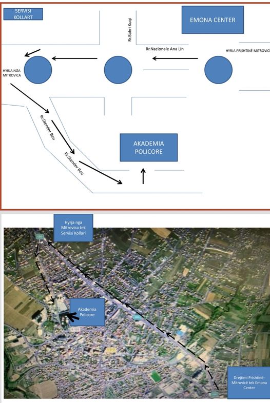 Me qëllim të lehtësimit të gjetjes së lokacionit të AKSP-së, kandidatët mund të përdorin skicën e rrugës nacionale Prishtinë-Mitrovicë deri te objekti i AKSP-së, si më poshtë: