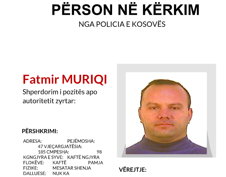 Policia e Kosovës – Drejtoria Rajonale e Policisë në Pejë, ka kërkuar ndihmën e qytetarëve për arrestimin e Fatmir Adem Muriqi për shpërdorim të pozitës apo autoritetit zyrtar.