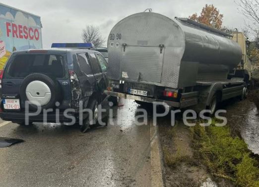 Një aksident mes tri automjeteve, njëra prej tyre veturë e Policisë së Kosovës, ka lënë të lënduar tre persona.