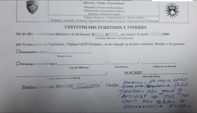 Policia thotë se ekziston dyshimi i arsyeshëm se i njëjti është përfshirë në rastin e sulmit ndaj personit zyrtar të ndodhur në protestën e datës 29.01.2022.