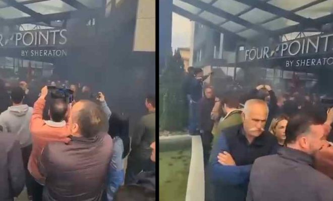 “Poshtë Gjykata” Speciale dhe “UÇK, UÇK” dëgjohen duke brohoritur ata. Ata kanë hedhur edhe tym të zi.
