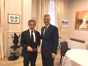 “Sot pata nderin që ish-presidentit Sarkozy, që punoi palodhshëm për njohje ndërkombëtare të pavarësisë sonë, ta dekoroj në emër të shtetit dhe të popullit të Kosovës me Medaljen Presidenciale Jubilare të dhjetëvjetorit të pavarësisë”, ka shtuar ai.