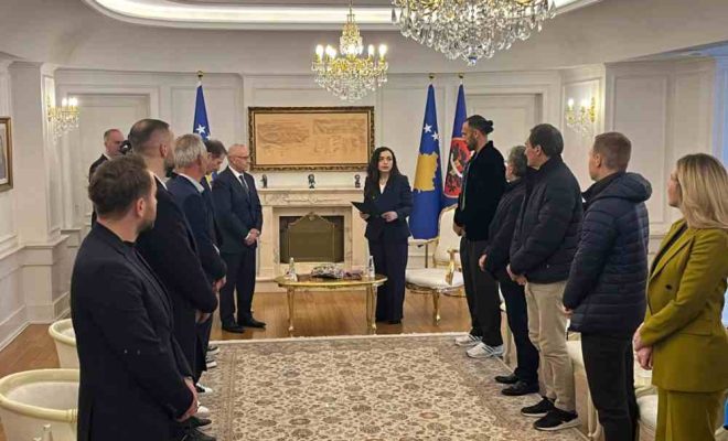 Presidentja e Kosovës, Vjosa Osmani, ka dekoruar Kombëtaren e Kosovës me Medaljen Presidenciale të Meritave.