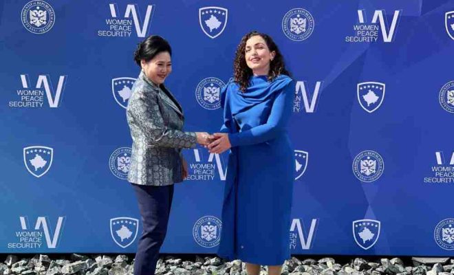 Presidentja e Republikës së Kosovës, Vjosa Osmani, ka pritur delegacionet ndërkombëtare të cilat do të marrin pjesë në edicionin e tretë të Forumit Ndërkombëtar për Gratë, Paqen dhe Sigurinë, raporton Ekonomia Online.