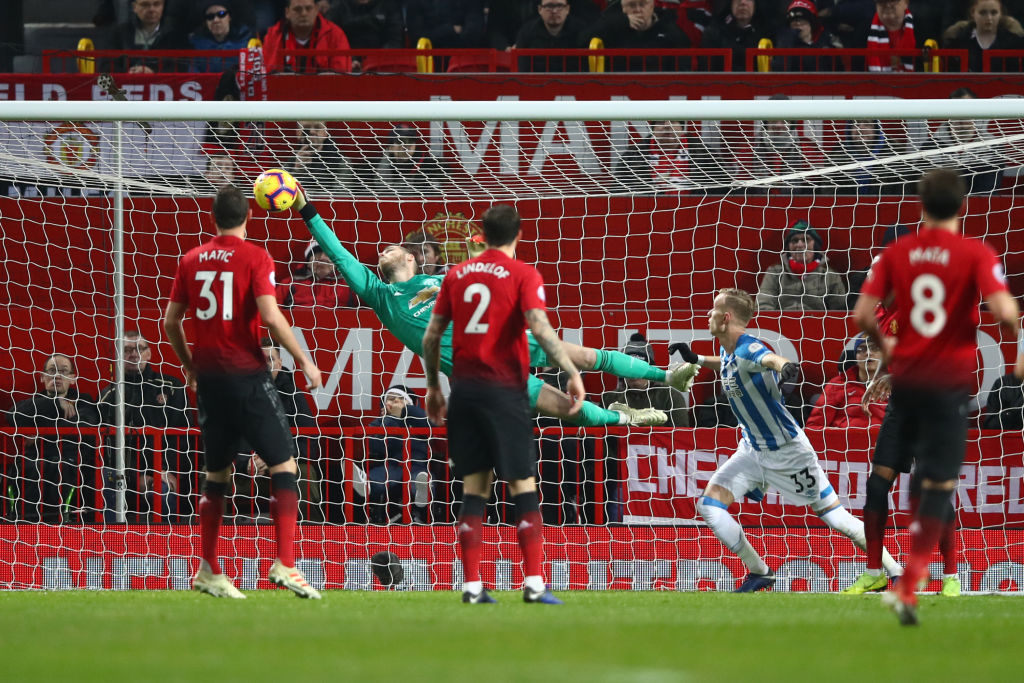 De Gea në aksion . (Photo by Clive Brunskill/Getty Images)