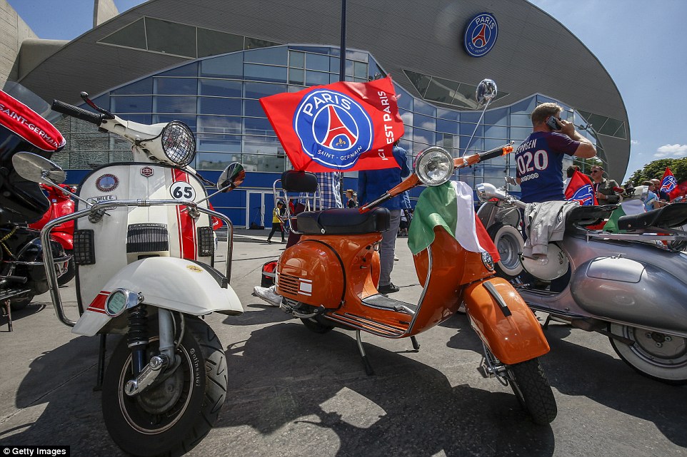 Turma e motoçikletave me flamuj të Italisë dhe PSG, por edhe me flakadanë e përcollën deri në hyrja të stadiumit.