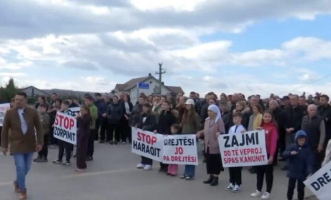 Banorët e fshatit Zajm, me parulla në duar dolën për të protestuar për pronat e tyre.