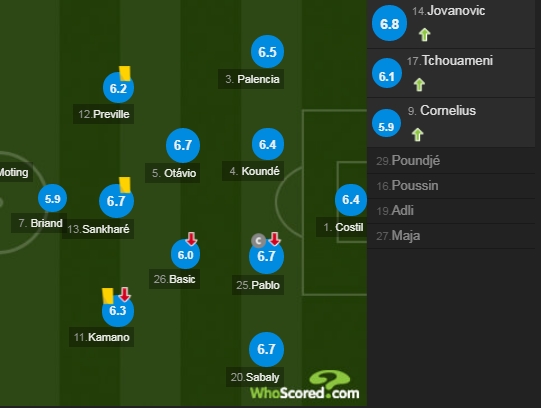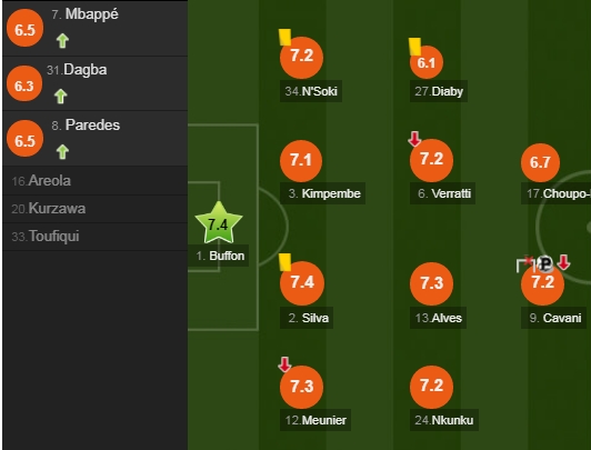 Me notë të lartë u vlerësuan edhe Thiago Silva, Thomas Meunier, Dani Alves dhe Cavani. Ai që dëshpëroi ishte Moussa Diaby, por edhe Eric Maxim Choupo-Moting.