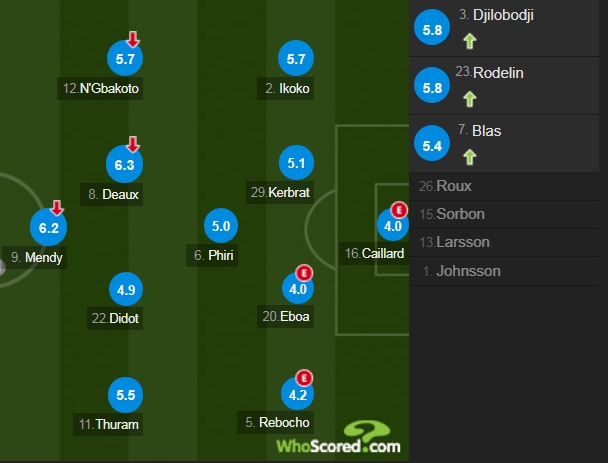 Te mysafirët më i miri ishte mesfushori Lucas Deaux, ndërsa pjesa më e madhe e skuadrës dështuan. Më poshtë keni notat e lojtarëve: