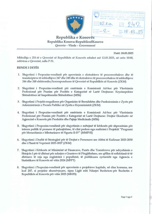 Ky është rendi i plotë i ditës në mbledhjen e nesërme të Qeverisë: