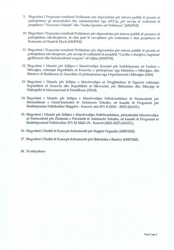 Sotpritet të shqyrtohet edhe nisma për lidhjen e Marrëveshjes së Përgjithshme të Sigurisë ndërmjet Republikës së Kosovës dhe Republikës së Sllovennisë për Shkëmbim dhe Mbrojtje të Ndërsjellë të Informacionit të Klasifikuar.