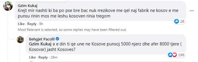 Postimi i tij morri mjaft shumë pëlqime në rrjetin social Facebook dhe më shumë se 300 komente.
