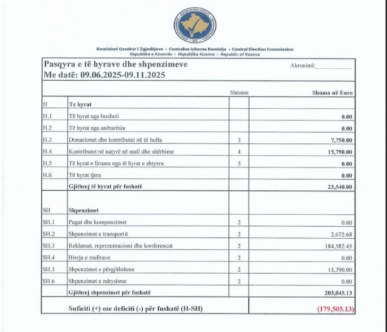 Lidhja Demokratike e Kosovës ka raportuar shpenzime për këtë fushatë 203 mijë euro, derisa të hyra vetëm 23 mijë e 540 euro.
