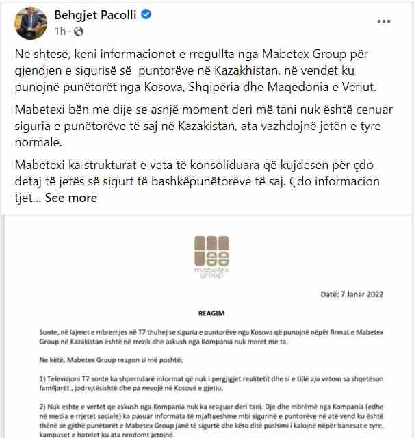 Pronari i kompanisë dhe njëherësh lideri i AKR-së, Behgjet Pacolli tha se deri tani në asnjë moment nuk është cenuar siguria e punëtorëve të kompanisë Mabetex.