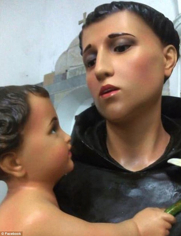Mbi figurën që e personifikon San Antonio de Padua, janë kryer punime aq të dobëta, sa që duket sikur t’i jetë vënë grim në fytyrë, transmeton Telegrafi.