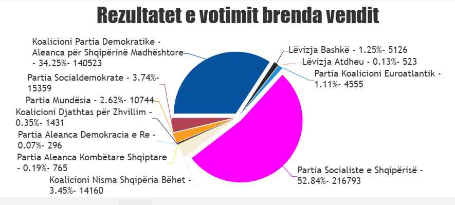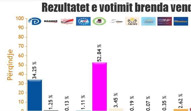 Me votat e numëruara deri më tash, Partia Socialiste e Edi Ramës kryeson bindshëm me 52.84%.