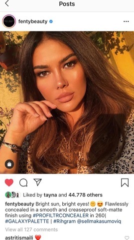 “Fenty Beuty by Rihanna” e quan të përsosur punën e Sellmës. Faqja e ndjekur prej miliona fansave, ka shpërndarë fotografinë e Sellmës.