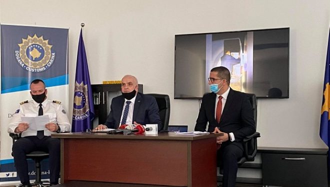 “Dogana e Kosovës këtë vit i ka kryer të giitha përgatitjet dhe janë arritur këto rezultate, janë kryer 1070 ndalesa rrugore 518, kontrolla bë vend kalime kufitare dhe është konfiskuae mall i kontrabandur në vlerënprej 107 mijë euro.Gjatë këtyre dy mujve Dogana ka trajtuar 224 kundërvajtje të zbukuara në vlerë malli prej mbi 600 mijë euro. Dogana është me prokurorinë është duke hetuar 11 zyrtarë të doganës për keqpërdorim të detyrës zyrtare”, tha Azemi.