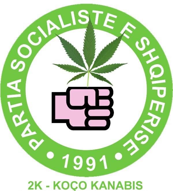 Stema e PS-së, e cila ka në qendër një trëndafil, është “shndërruar” në një gjethe kanabisi.