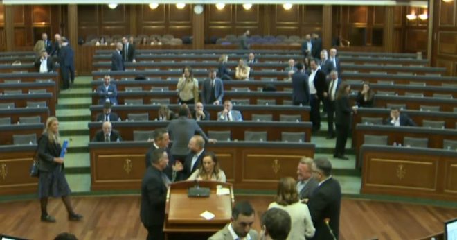 Deputeti Pal Lekaj është parë teksa ia dërgon një edhe shefes së GP të VV-së, Mimoza Kusari-Lila.