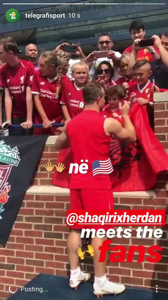 Por në stërvitjen e fundit para ndeshjes me Unitedin, Xherdani është takuar me tifozë shqiptarë të Liverpoolit.