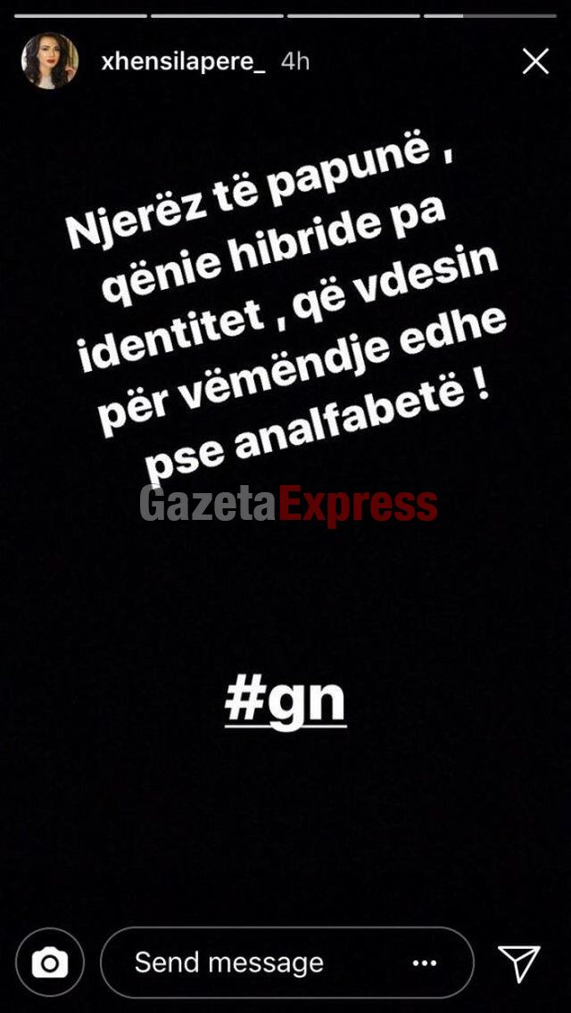 “Njerëz të papunë, qenie hibride pa identitet që vdesin për vëmendje edhe pse analfabetë!”-ka shkruar Pere në një postim në Insta Story, që duket se i drejtohet pikërisht Lindës.