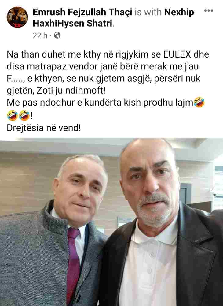 “Na than duhet me kthy në rigjykim se EULEX dhe disa matrapaz vendor janë bërë merak me j’au F….., e kthyen, se nuk gjetem asgjë, përsëri nuk gjetën, Zoti ju ndihmoft!
