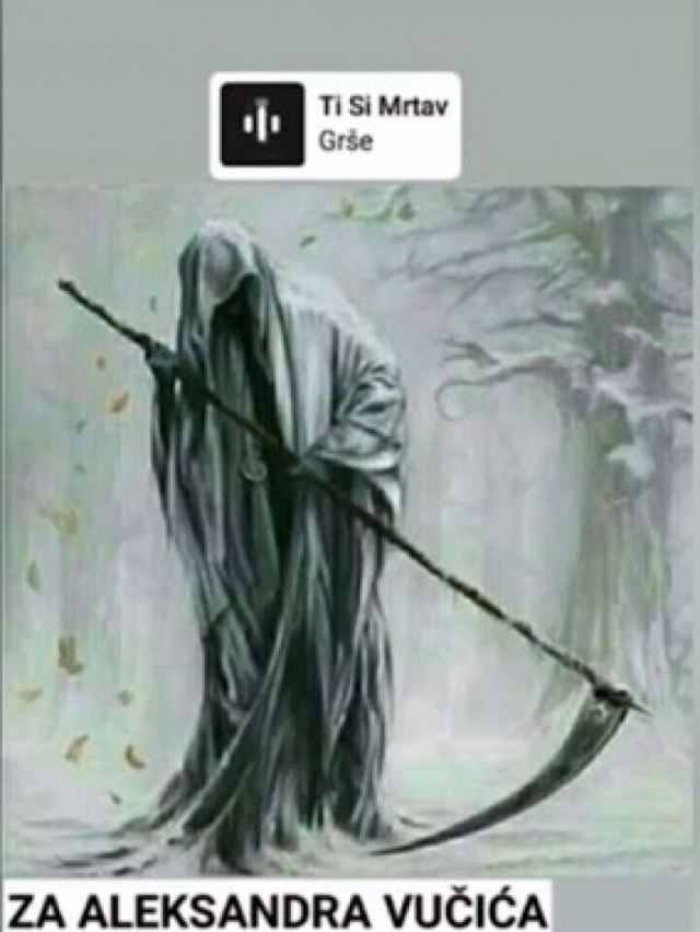 Ai ka publikuar fotografi të kosës, që sipas B92 simbolizon vdekjen, me përshkrimin “Për Aleksandar Vuçiq”, të shoqëruar gjithashtu me një këngë të titulluar “Je i vdekur”.