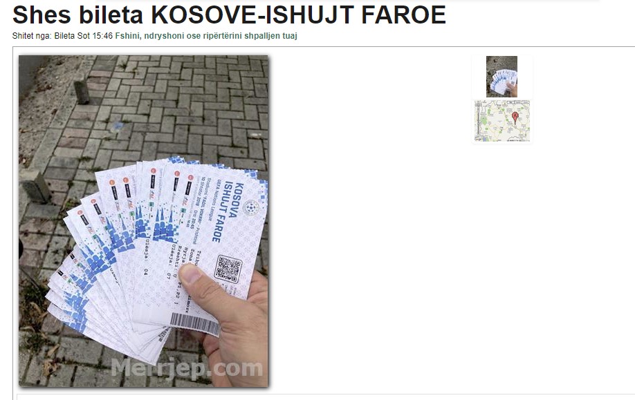Mjafton një kërkim i vogël në faqen për shitblerje ‘merrjep’, për të parë se në të kanë dalë biletat në tregun e zi për ndeshjen Kosovë – Ishujt Faroe.