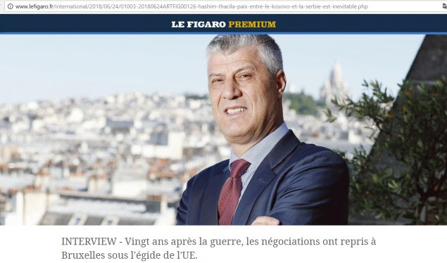 Thaçi për “Le Figaro”: Paqja ndërmjet Kosovës dhe Serbisë është e paevitueshme