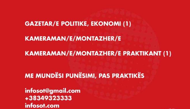 Gazeta online “InfoSot” shpall konkurs për gazetar/e dhe kameraman/e