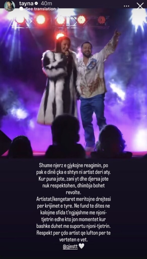 Reperja e njohur Tayna përmes një postimi në rrjetet sociale, ka folur për presionin dhe sfidat që përballen artistët, duke theksuar se shpesh publiku i gjykon reagimet e tyre pa e ditur se çfarë i ka shtyrë deri në atë pikë.