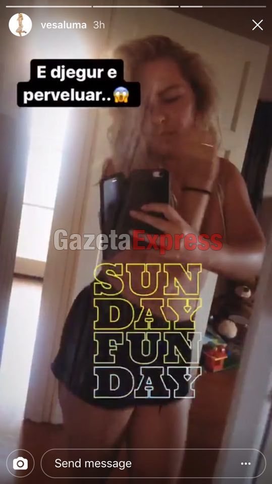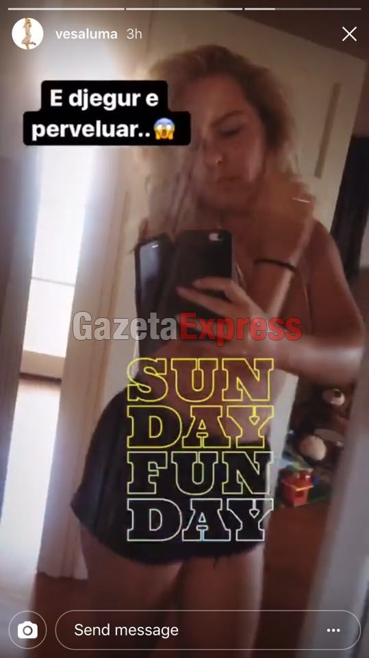 E zhveshur ajo ka pozuar para pasqyrës ku tregon se është djegur nga rrezet e djellit. Edhe pse nuk duket , ajo ka lënë të kuptohet se është pa reçipeta.