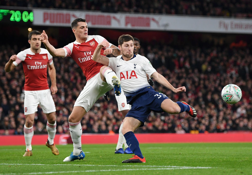 Granit Xhaka në duel me Ben Davies (Foto: Shaun Botterill/Getty Images/Guliver)