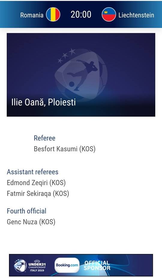 Njëri nga gjyqtarët më të mirë në Kosovë, Besfort Kasumi është deleguar për ndeshjen mes Rumanisë U21 dhe Lihtenshtajnit U21.