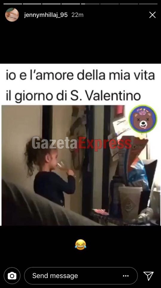 Dhe tashmë me anë të një postimi humoristik ajo ka treguar se me kë do ta kalojë festën e të dashuruarve. Shumë pak na ndan nga Shën Valentini dhe Xheni ka konfirmuar në në farë mënyre se do ta kalojë vetë.