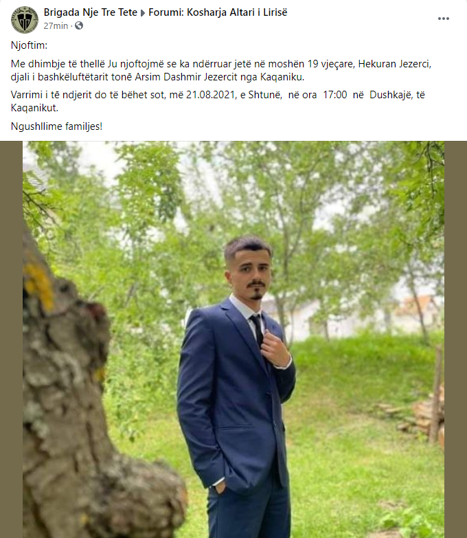 Bëhet fjalë për Hekruan Jezercin, djalin e ish luftëtarit të UÇK-së.