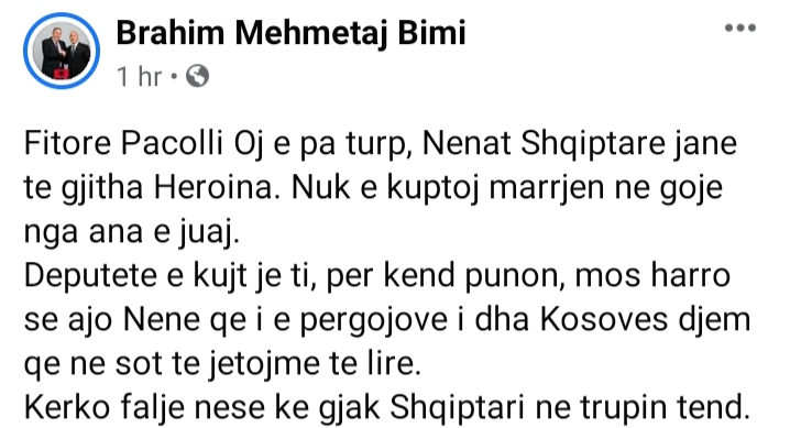 Kryetari i degës së kësaj partie në Prishtinë, Brahim Mehmetaj-Bimi, kërkon që Pacolli të kërkoj falje nëse e ndjenë vehtën shqiptare!