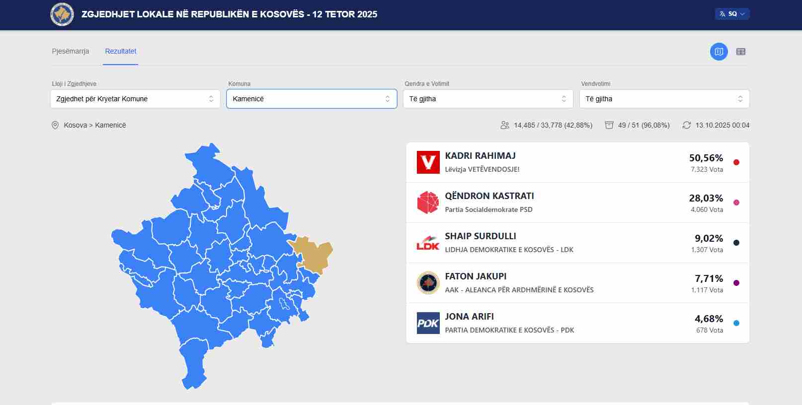 Kadri Rahimaj i Kamenicës e ka siguruar pa balotazh edhe një mandat me 50.56 për qind të votave.