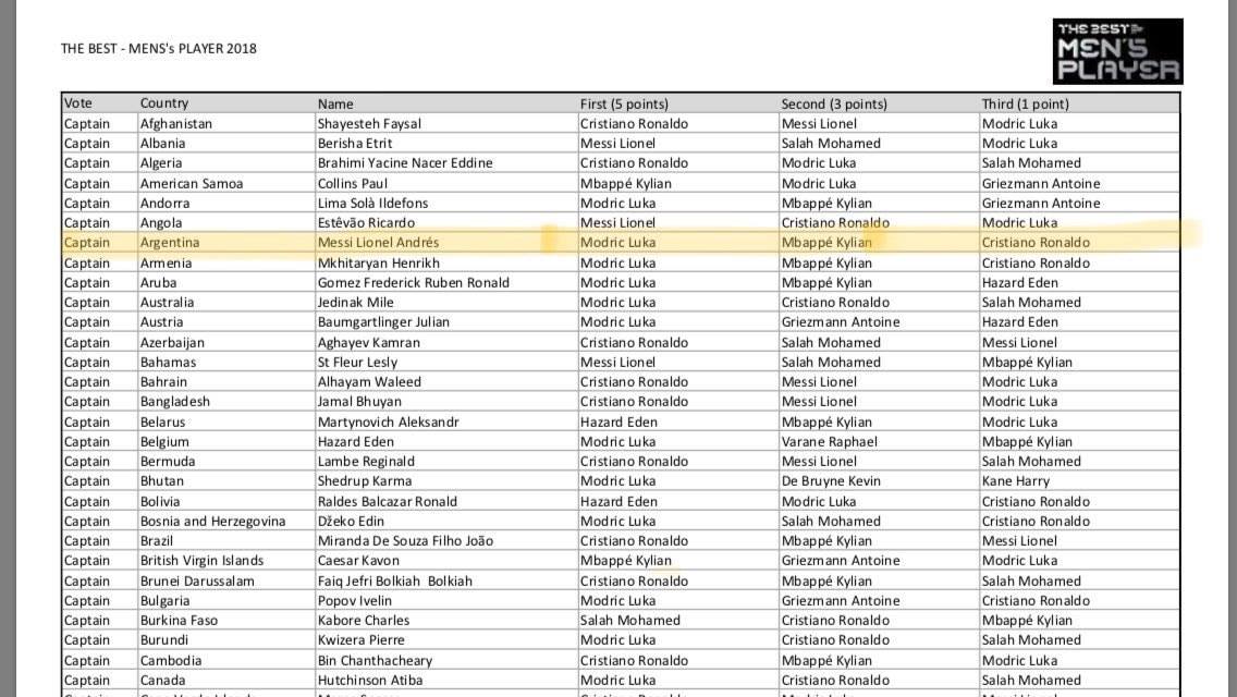 Megjithatë, interesante janë edhe votat e dy lojtarëve më të mirë në botë momentalisht, Messit dhe Ronaldos, të cilët janë zbuluar tashmë.