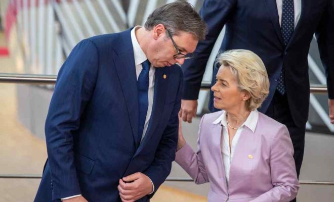 Presidenti i Serbisë, Aleksandar Vuçiq, i ka kërkuar presidentes të Komisionit Evropian, Ursula von der Leyen, që Bashkimi Evropian të ndikojë që Kosova mos ta ndalojë përdorimin e dinarit serb.