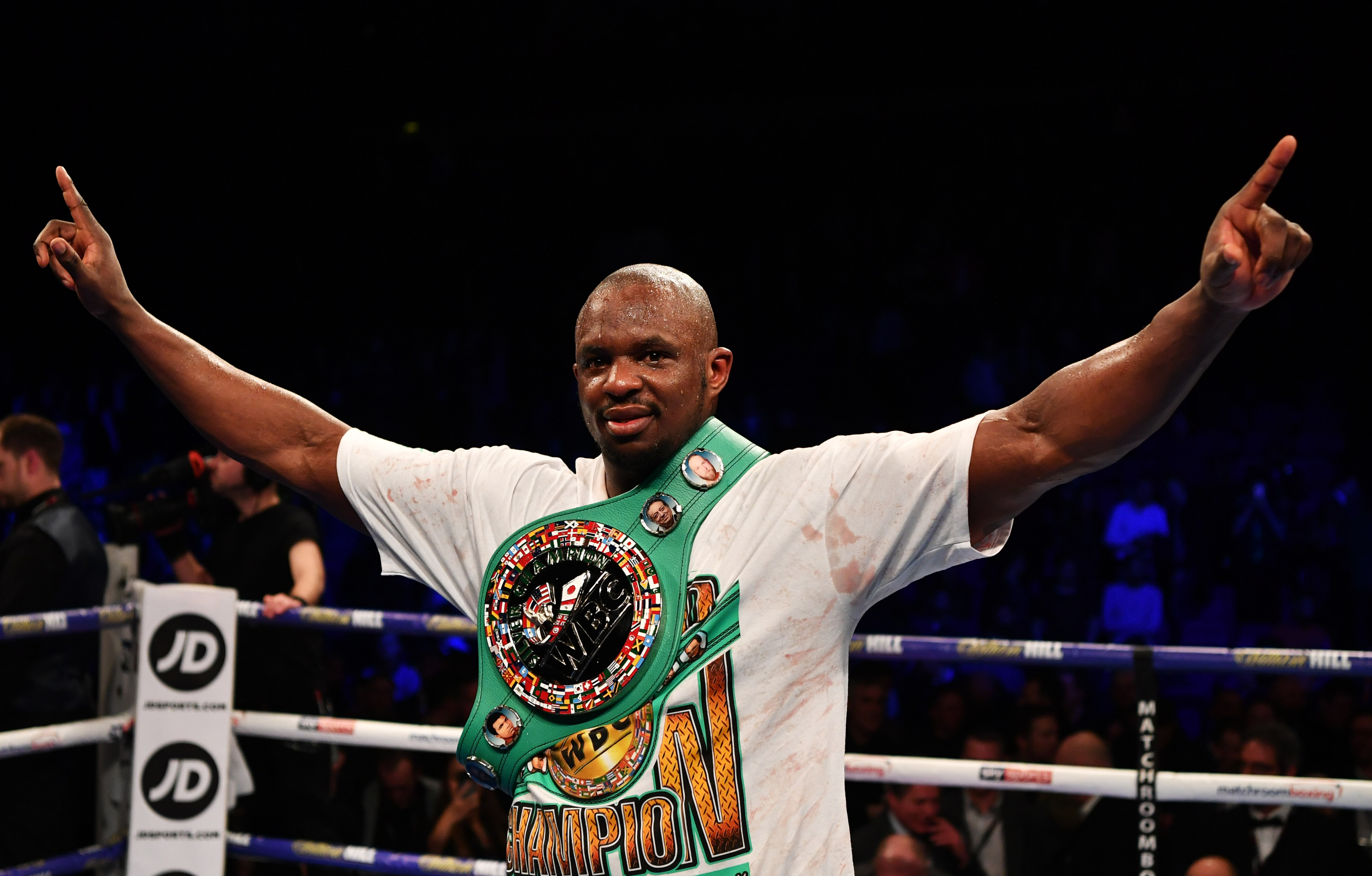 Dillian Whyte duke festuar fitoren në meçit e peshave të rënda në kampionatin e argjendtë të WBC (Foto: Getty Images)