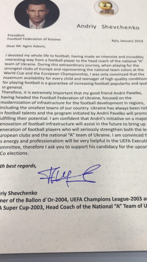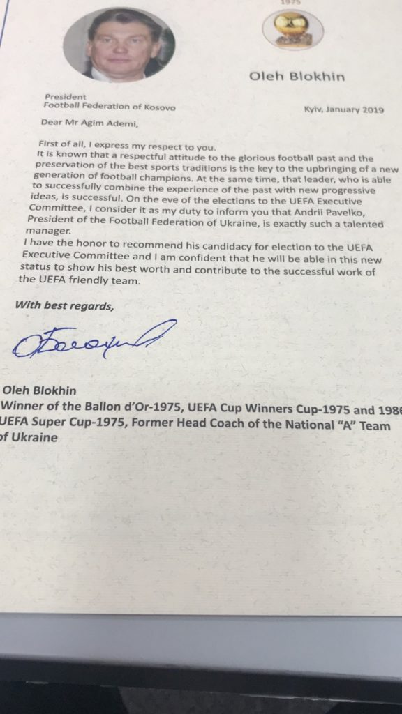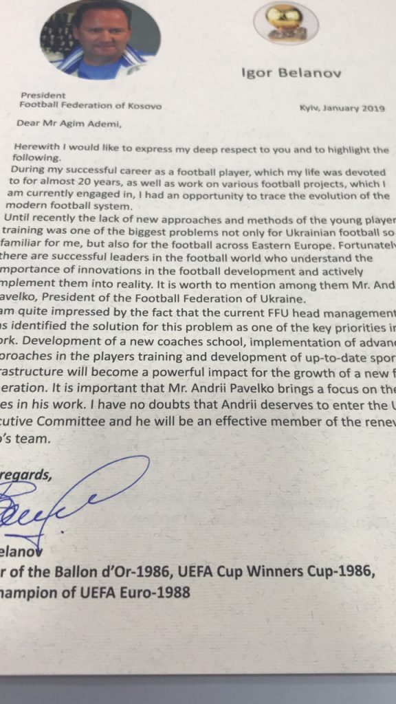 Së fundmi presidenti i Federatës së Futbollit të Kosovës, Agim Ademi ka marrë shumë letra të shkruara nga personalitete të shquara sportive në Ukrainë.