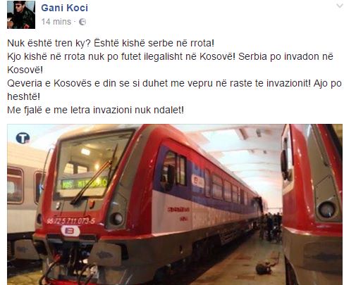 Ai ka shkruar në Facebook se Qeveria e Kosovës po hesht karshi trenit, shkruan lajmi.net.