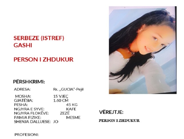 Bëhet fjalë për Serbeze (Istref) Gashi, e lindur më 6 qershor 2008, në Pejë.