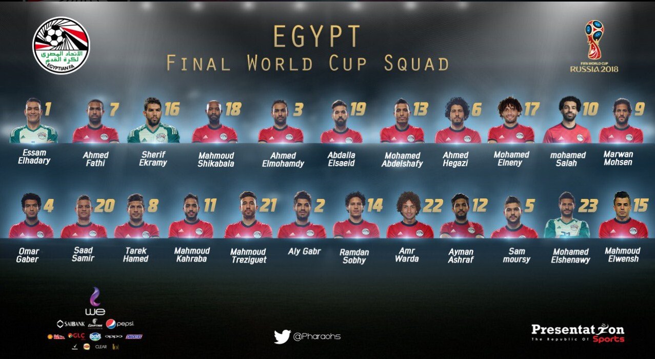Kombëtarja e Egjiptit ka publikuar listën zyrtare për Kampionatin Botëror.