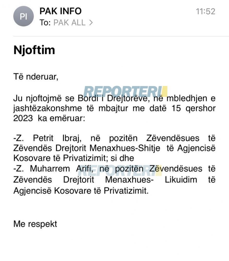 Pos emërimit të Arifit, bordi i AKP’së pozitën e Zëvendësuesit të Zëvendës Drejtorit Menaxhues-Shitje të AKP’së i dha edhe Petrit Ibrajt.